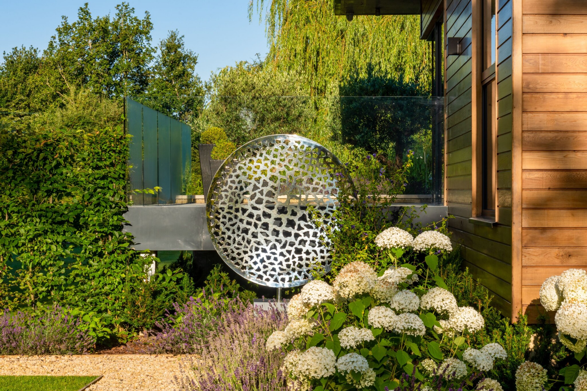 Creating a focal point with outdoor sculpture anchors the space. It commands attention and draws the eye to the surrounding environment. You can also add a surprise and delight element into your landscaping by nestling an abstract sculpture into planting or against a hedge. Find more ideas and inspiration about The Role of Abstract Sculpture in Landscape Design.