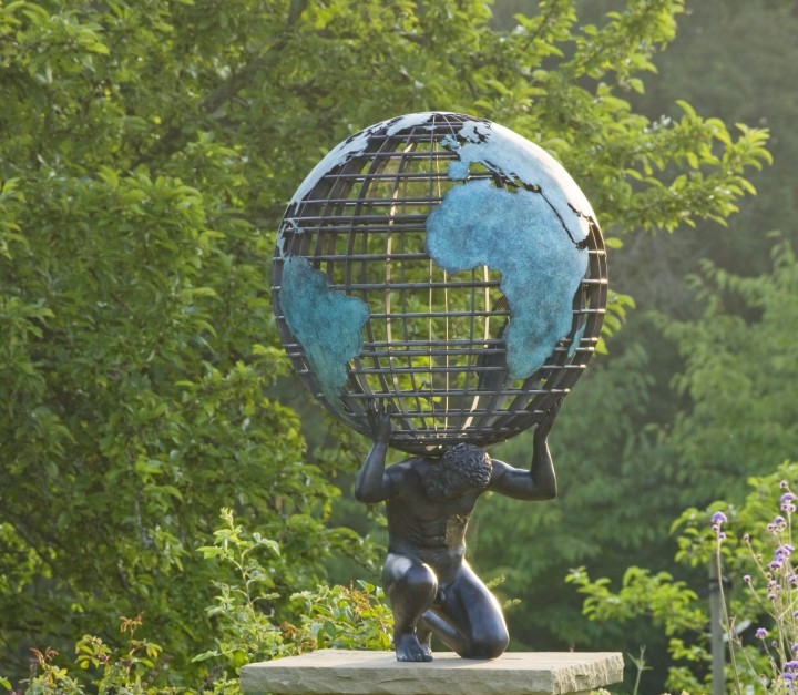 As an addition to the Globe dial, a cast of the Greek Titan, Atlas, can be commissioned to support the dial. This striking sundial poignantly reminds the viewer of the literal mass of responsibility carried by Atlas to support and maintain the Earth.