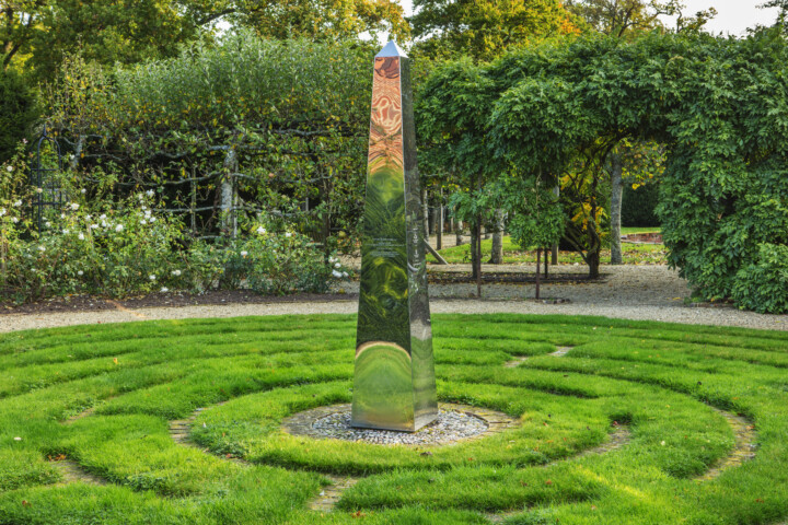 The Obelisk sculpture's noon shadow measures the progression of the seasons from the spring equinox to the winter solstice. A birthdate or anniversary can equally be marked with a stainless-steel marker at noon.